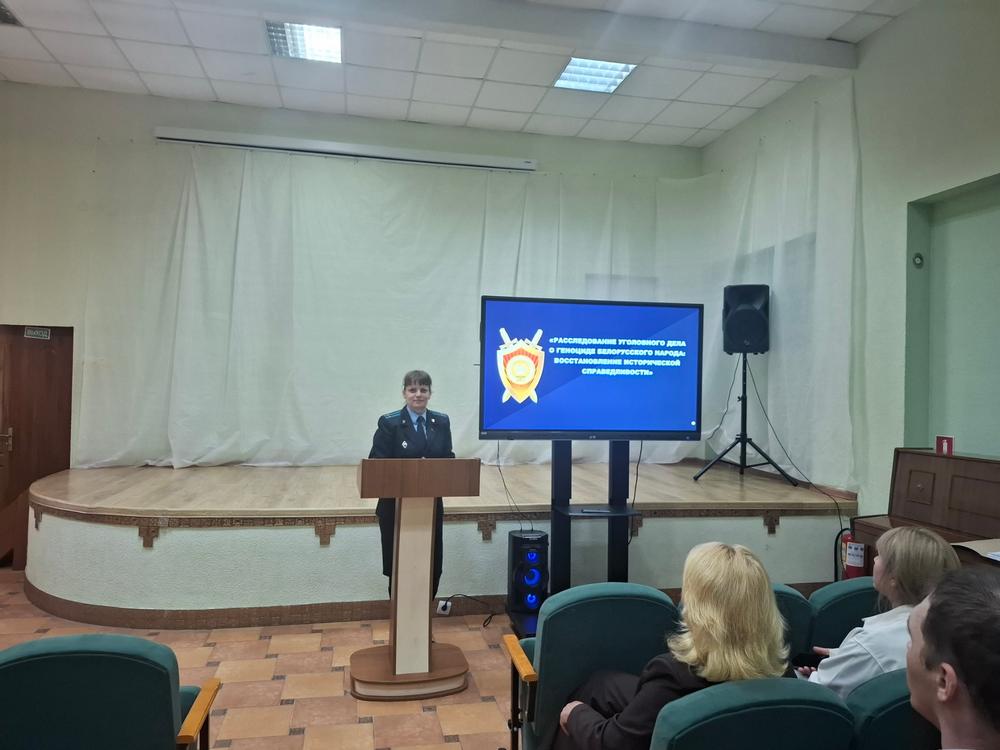 Помощник прокурора Гродненского района по особым поручениям Марина Терешко проинформировала о ходе расследования уголовного дела о геноциде белорусского народа в годы Великой Отечественной войны и в послевоенный период.